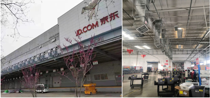 2、若高風(fēng)速影響車間生產(chǎn)工藝或送風(fēng)距離超過25m,則采用設(shè)備接風(fēng)管的送風(fēng)方式,若送風(fēng)距離超過50米,則冷風(fēng)機(jī)必須采用適合遠(yuǎn)距離送風(fēng)的組合式蒸發(fā)降溫機(jī)組。很多鋼結(jié)構(gòu)廠房都是半倉庫半生產(chǎn)的狀態(tài),車間內(nèi)只有部分區(qū)域有工作崗位,這個時候就非常適合采用崗位定向送風(fēng)。